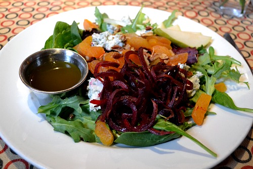 I had the bistro salad – mixed greens, roasted beets, pears, apricots, roquefort cheese and spiced pecans with balsamic vinaigrette. I love this salad. Such an awesome mix!
